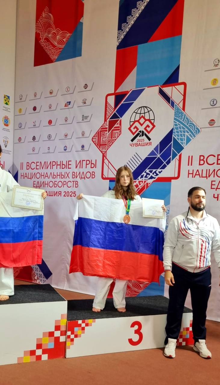 Несмотря на высокий уровень конкуренции, Ульяна показала силу духа, настойчивость и свой спортивный характер! Проведя напряжённые поединки, завоевала 3 место в категории девушек 12–13 лет (до 50 кг, версия Полный контакт).